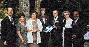 From left to right: Peter Nikolai Ehlers, LLM'88; Marie Helen Pichler, LLM'86; Mechthild Dubois-Utters; Paul Dubois, BCL'73, Canadian Ambassador to Austria; Nicholas M. Matte, OC, QC, FRSC, Director Emeritus, Institute of Air and Space Law, McGill University; Tamar Oppenheimer, OC, BA'46, LLD'94, former Assistant Secretary-General, United Nations Secretariat; Nandasiri Jasentuliyana, LLM'65, Director, Office for Outer Space Affairs, and Deputy to the Director-General, United Nations Office at Vienna.