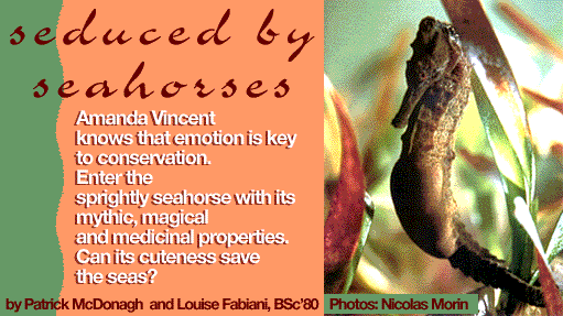 "I've had favourites," Amanda Vincent confesses. "James, who has the world record for babies: 1,572 at one time! And one tagged Male #85, who lived in the Sydney harbour and would only attach himself to discarded lawn sprinklers." McGill's newest biology professor recalls her seahorses fondly.
