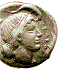 | Greek tetradrachm coin from 474-450 BC, showing the head of Arethusa. |   |