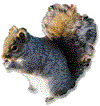 Sciurus carolinensis, better known as the grey squirrel, is native to North America. In the wilds these hardy little rodents are adept at gathering and hoarding tasty snacks like birch, oak, and hickory nuts. In urban environments (ahem), they eat anything from bird feeder and garden fare. Squirrels do not hibernate but prefer to venture out only in mild weather. They may be cute and cool, but squirrels can carry diseases; according to biology professor Donald Kramer, "one should avoid handling them or giving them an opportunity to bite."